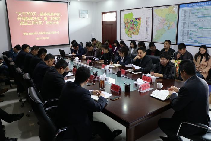 本報(bào)訊 3月18日,青島西海岸交通投資建設(shè)有限公司召開“大干200天,起步就是沖刺,開局就是決戰(zhàn)”暨“加強(qiáng)和改進(jìn)工作作風(fēng)”動員大會,深入學(xué)習(xí)貫徹全區(qū)“項(xiàng)目落實(shí)年”、“改革創(chuàng)新年”和“作風(fēng)建設(shè)年”活動精神,深化作風(fēng)建設(shè),推進(jìn)項(xiàng)目落實(shí),高標(biāo)準(zhǔn)、高效率、高水平推進(jìn)青島西客站規(guī)劃建設(shè)。